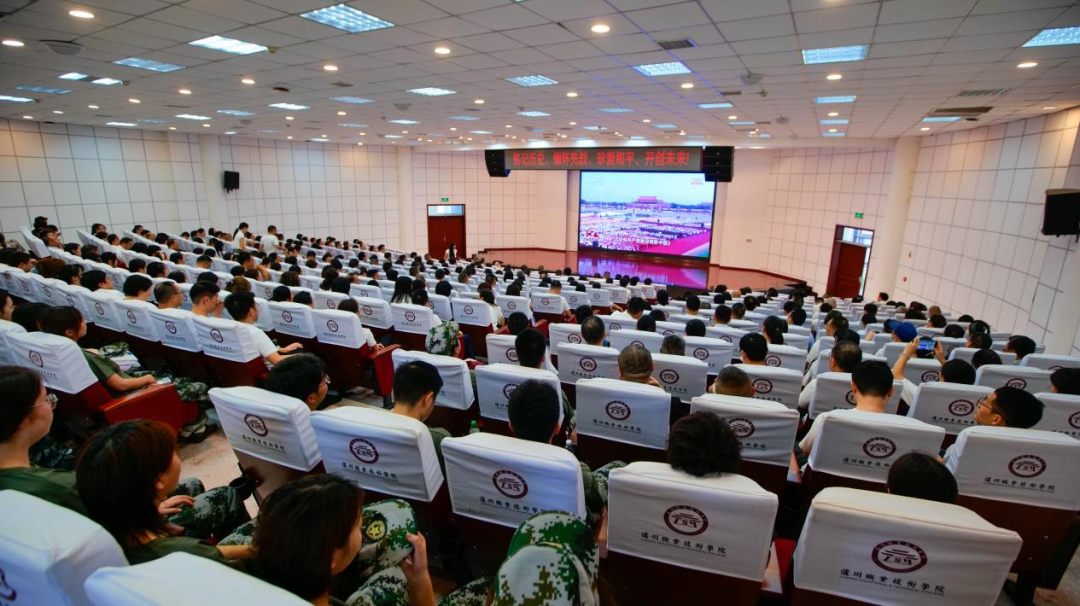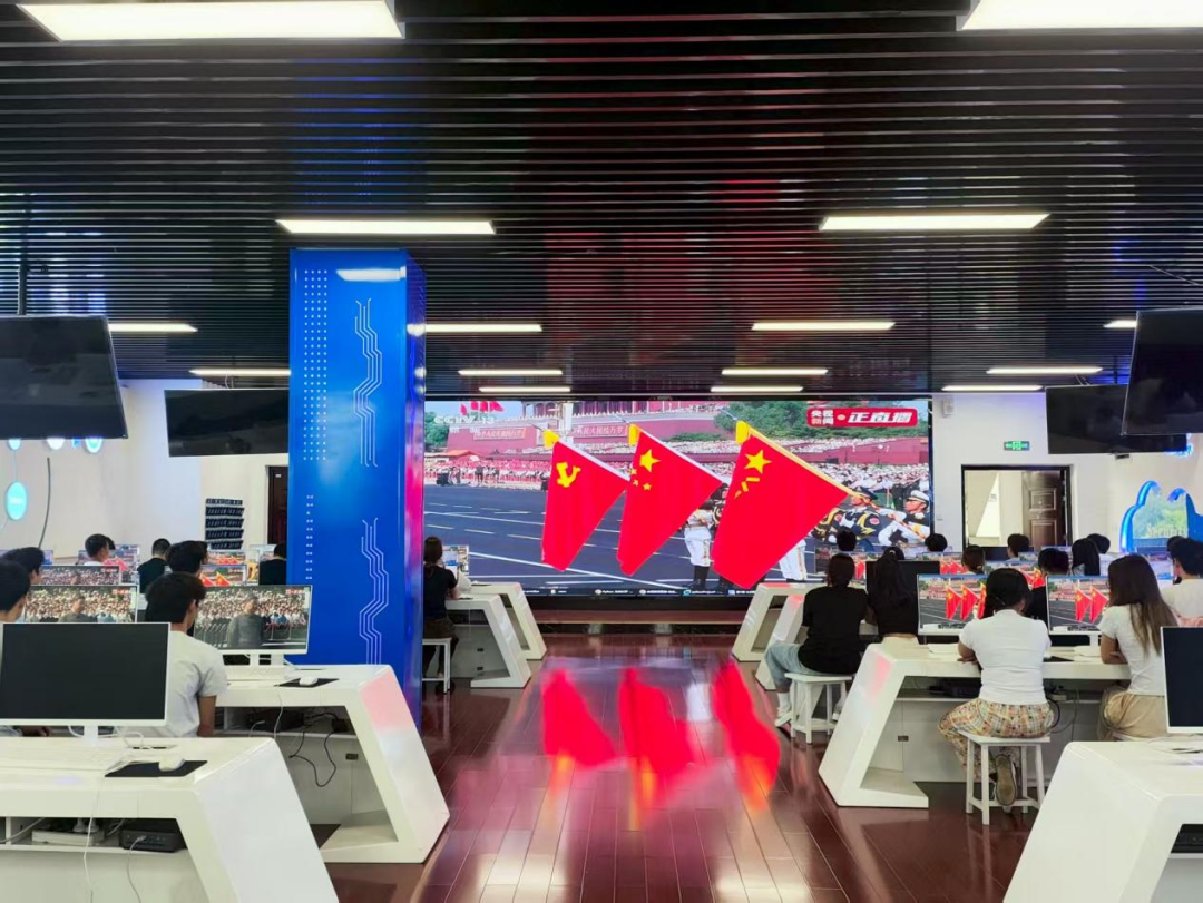 在党旗、国旗、军旗引领下,受阅方阵踏着铿锵步伐经过天安门,45个方(梯)队依次亮相,陆海空基战略重器、高超精打、无人和反无人装备彰显着现代化军队的威武气势。泸职校园里,师生们相聚在会议室、实训室、体育馆等地,共同观看大会直播,认真聆听习近平总书记重要讲话精神,讴歌伟大抗战精神,凝聚起蓬勃向上的精神力量。